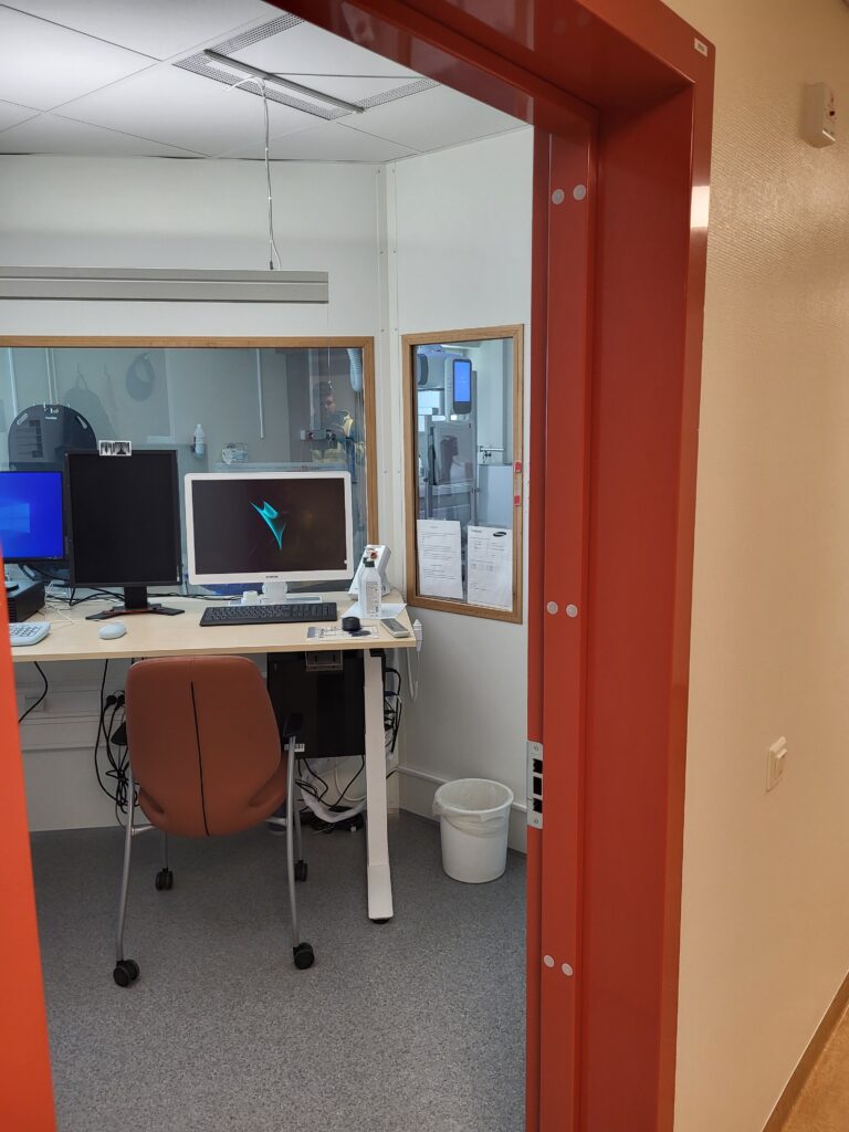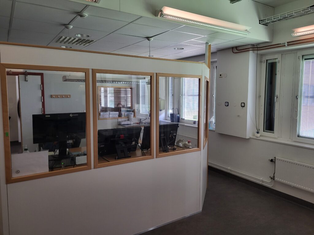 – Alla väggar som vetter mot manöverrummet och den övriga verksamheten har försetts med blyskivor. Dörrarna är också strålskyddade, och vi har monterat en ny tung strålskyddsskärm av bly inne i labbet.